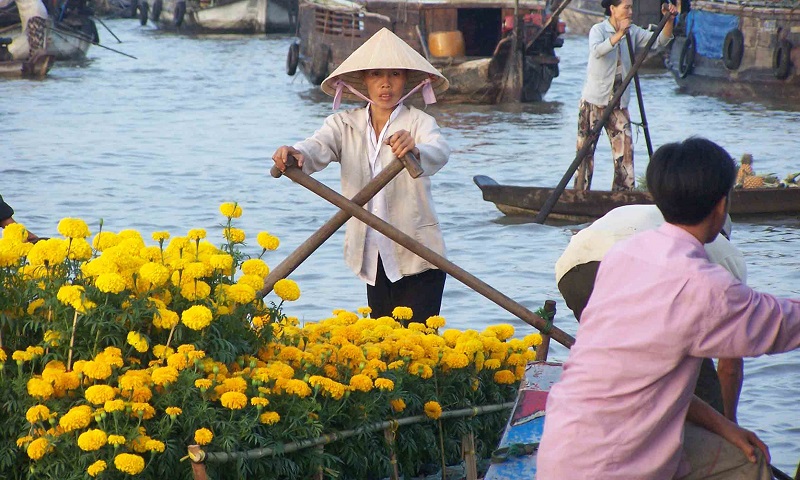 After breakfast and a boat cruise you’ll arrive at Cai Rang floating market on the Mekong Delta. Both the journey and the market provide insights into the rural Mekong Delta lifestyle.