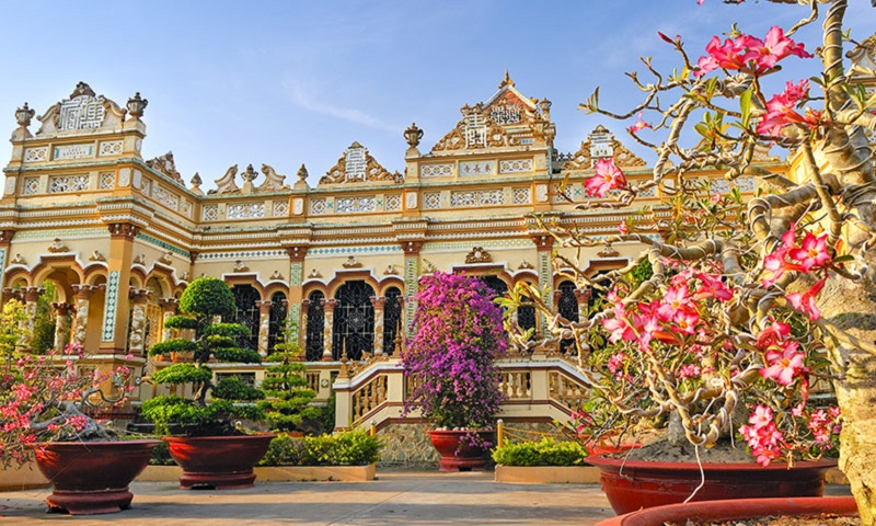 Vinh Trang Pagoda is renowned for its architectural mixture of Chinese, Vietnamese and Angkor styles. It’s Located on a 2 hectare block with 5 buildings, 2 ornamental yards, 178 pillars and many valuable statues (especially the statues of 18 arahants which were carved from wood and made in 1907) the pagoda will give you a deeper look into the relationship between Vietnamese art and Buddhist beliefs.