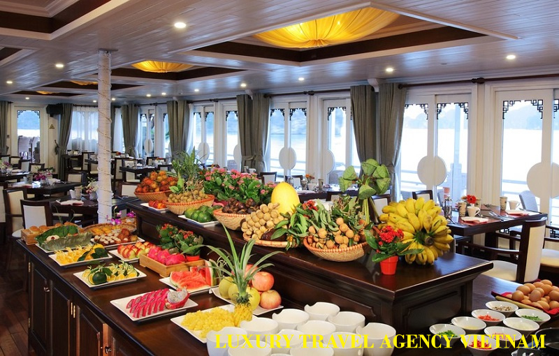 13:00: Cruising through Bai Tu Long Bay & having lunch with our set menu (please let us know if you are vegetarian or vegan) Set Menu.